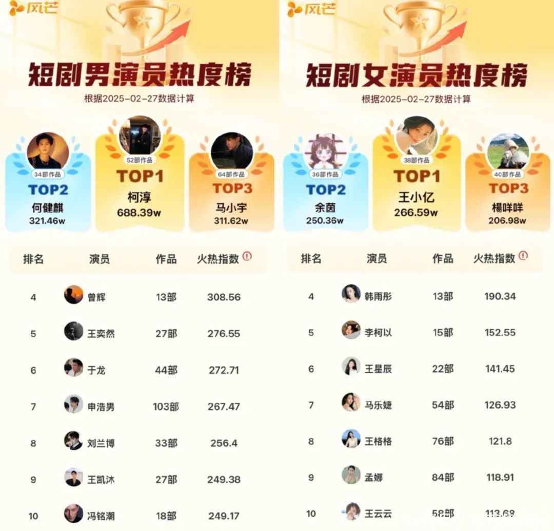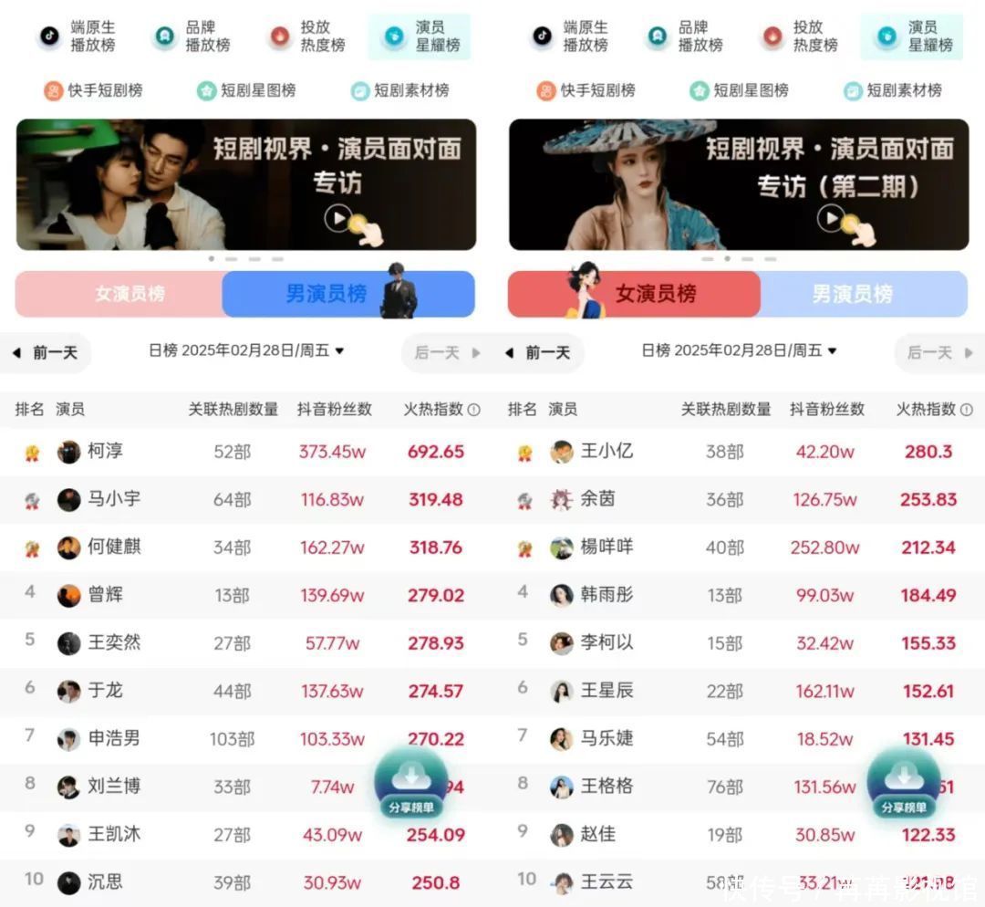 影视独舌盘货了最近的微短剧演员热度榜,望望又有哪些新东谈主演员受到了竖屏微短剧用户的宠爱。