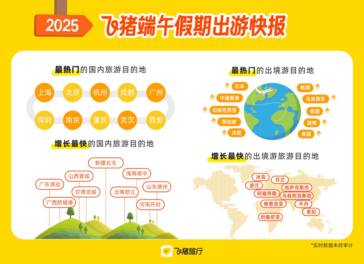 相关场所面,上海、北京、杭州、成都、广州、深圳、南京、重庆、西安、武汉是本年端午技巧国内最热点的旅行相关地。新疆北屯、山西晋城、海南琼中、广东清远、甘肃武威、云南怒江、山东德州、广西防城港、河南开封的旅游预订东谈主次增速领跑世界。私有的当然东谈主文风景、不拥堵的致密出行体验使得这些“黑马”相关地在酬酢媒体上“圈粉”多数。