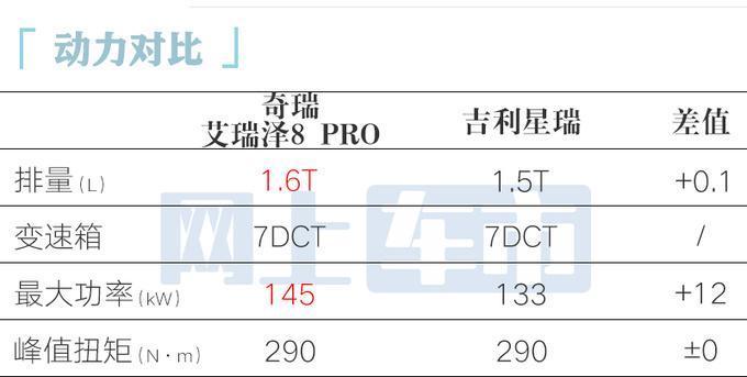艾瑞泽8 PRO搭载1.6T发动机,最大功率145kW体育游戏app平台,峰值扭矩290N·m,匹配7DCT变速箱,可加92号汽油。
