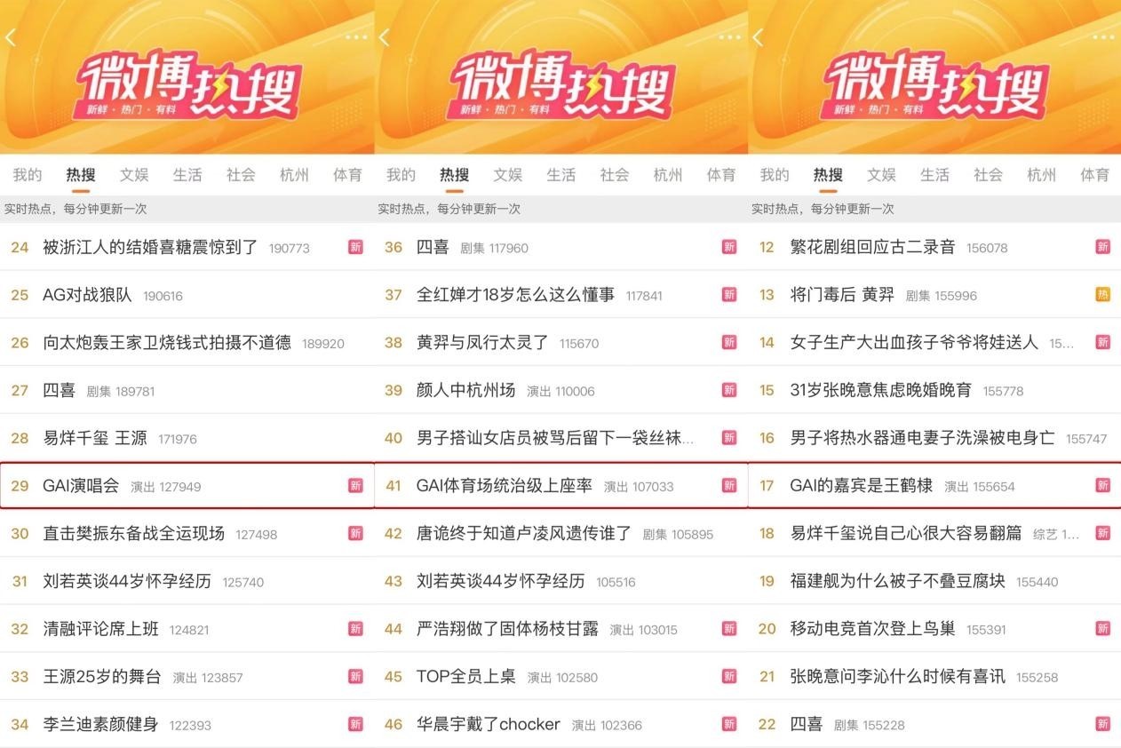 7. 从紧闭式馆内空间到开畅的露天灵通场,GAI以不停突破自我的姿态完成艺术进阶。本次重庆站门票开启预售两轮均在数秒内全部清空,抢票盛况堪比春运。随后官宣嘉宾气势:王鹤棣、C-BLOCK(盛宇、刘聪、功夫胖)、布瑞吉、威尔,豪华建设令粉丝直呼“值回票价”,酬酢媒体上热议不停,#GAI演唱会##GAI灵通场总揽级上座率##GAI的嘉宾是王鹤棣#等话题速即登顶微博热搜榜,热度抓续发酵。