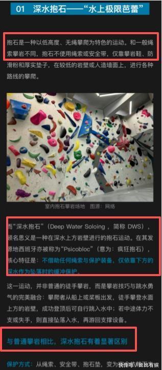 以至邀请了《徒手攀岩》的专科团队担任安全参谋人,开拍前专科替身已完成20余次落水测试。 专科攀岩讲授也给出解读体育游戏app平台,称“深水抱石”的中枢是欺诈海水四肢自然缓冲,风险远低于硬地攀岩。