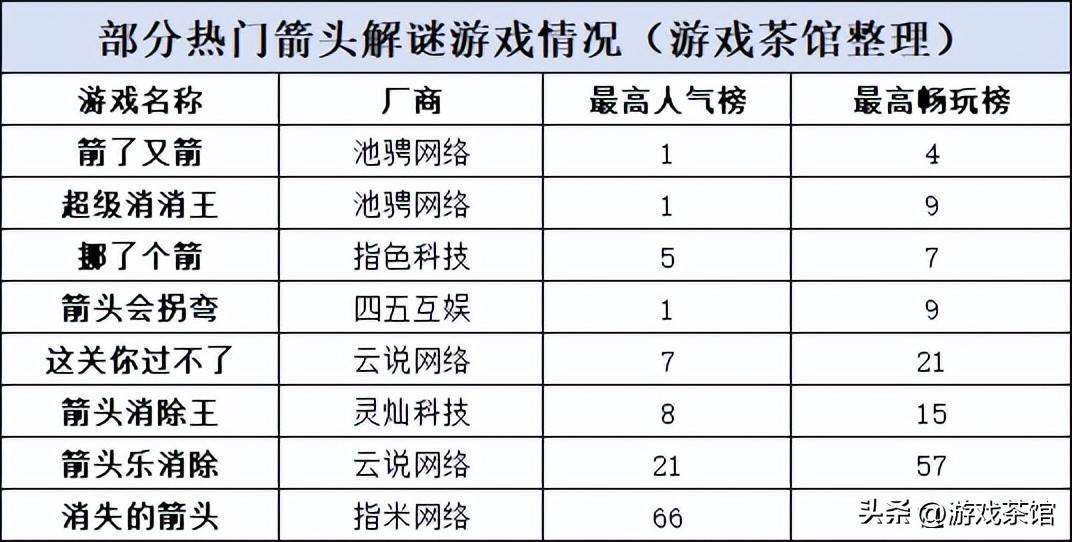 再者,从流量角度来看,如今的箭头解谜赛谈实质上也仍是赶快插足下半场了,头部刊行扎堆、新游成千上万,且已有头部家具强势占榜,要在这么一个池子中去抢量,难度可思而知。