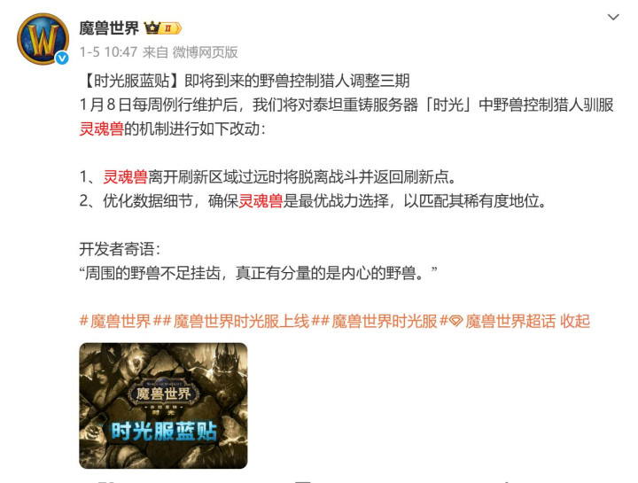 今天早些期间,魔兽寰宇官清廉式公布了魔兽寰宇时光服中猎东说念主野兽规矩天禀的改变。其实此次改变关于猎东说念主玩家来说挺伤的,至少许多伤害被缩短了。不外关于其他天禀的猎东说念主来说反而是利好,毕竟最强的猎东说念主天禀下调了,那么其他猎东说念主的天禀当然相对提高了,那么玩家就不错玩我方念念玩的天禀了。那么此次转机的中枢是什么呢?