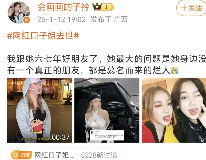 2026年1月1日凌晨开yun体育网,粉丝两百多万的著名博主“口子姐”白费死一火,年仅29岁。她幼年景名却也饱受争议,最终成为一个悲情东谈主物。