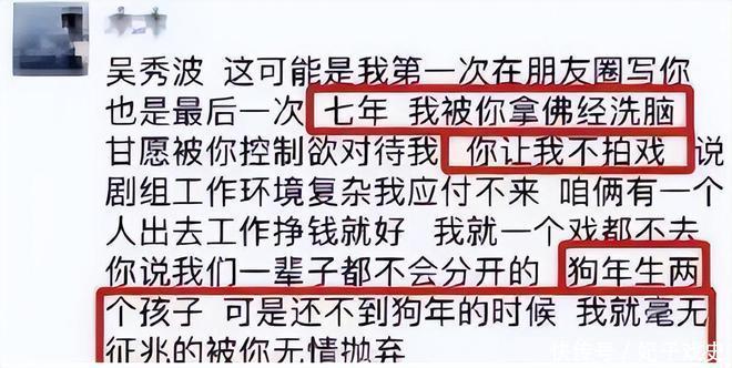 因为吴秀波的洗脑,归天了处事,容许无名无分的随着吴秀波,以致在没著明分的情况下吗,给吴秀波生下了两个孩子。