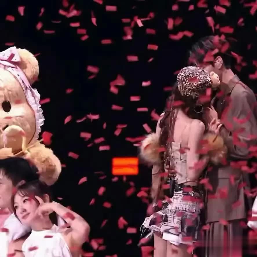 舞台以暖棕颜色为主,营造出一种温馨而淘气的氛围。花瓣雨殊效在扮演尾声飘落,为统统舞台增添了戏剧张力。扮演中,毕雯珺一手搂住张予曦的腰部,另一手轻抚其头部,通缺陷位角度呈现“接吻”视觉后果,这一幕让现场不雅众尖叫持续。