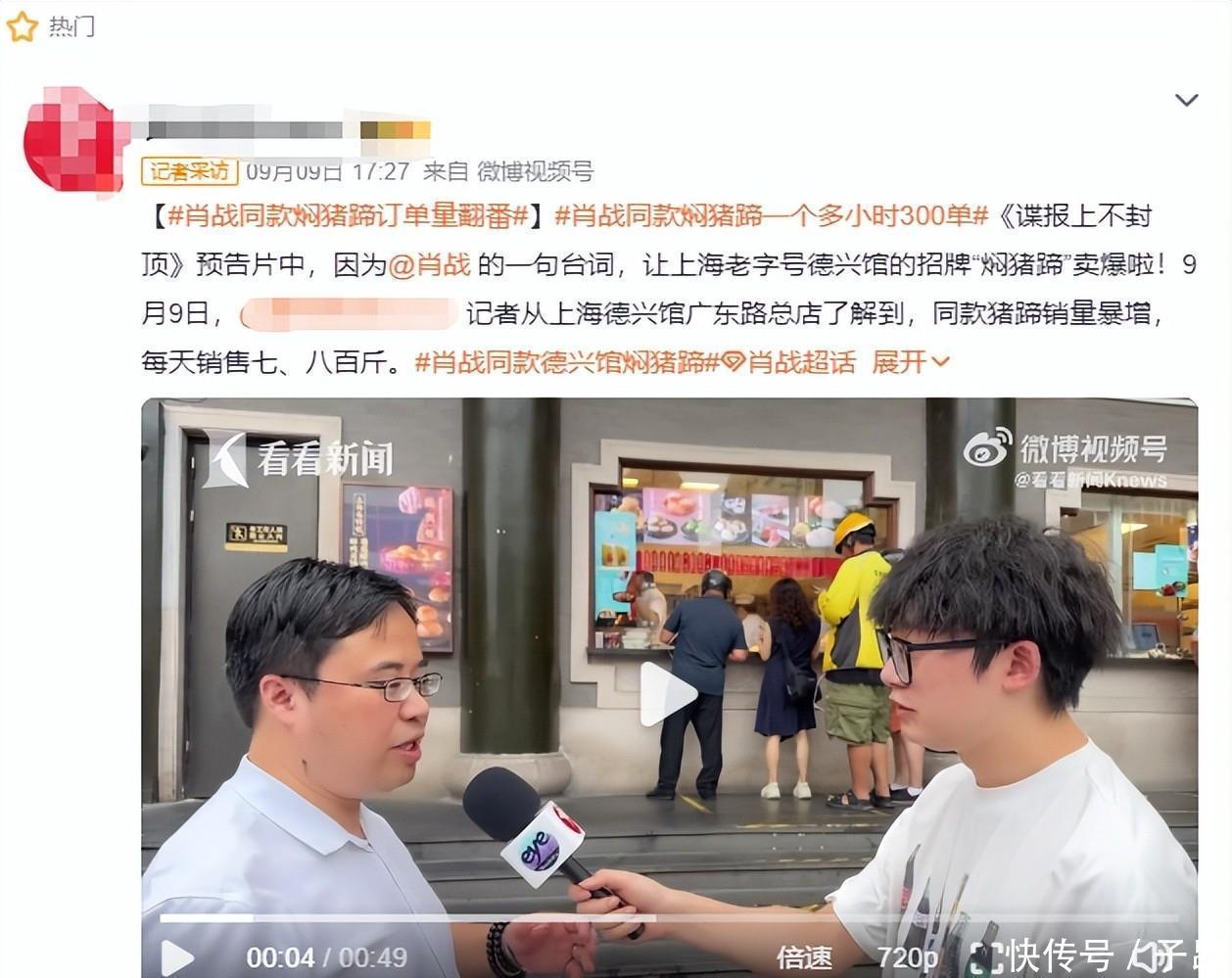 预报片发布后不久,肖战台词中说起的同款焖猪蹄便以迅雷之势“破圈”走红。据9月9日联系记者的报说念,这家老字号店铺的订单量呈现出井喷式增长。只是一个多小时,同款焖猪蹄的订单数目就多达300单。逐日的销售量更是攀升至七八百斤,当之无愧地成为了新晋网红好意思食!