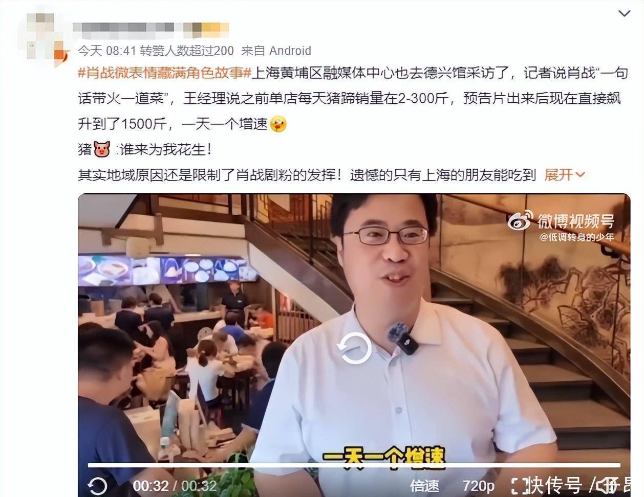 在《情报上不封顶》首版预报片发布之后,顺利“破圈”激勉等闲吝惜的,既非以民国贵令郎形象惊艳亮相的肖战,亦非好意思得令东说念主目下一亮、刷新颜值高度的周雨彤,而是肖战台词中所说起的上海老字号德兴馆那牌号焖猪蹄!