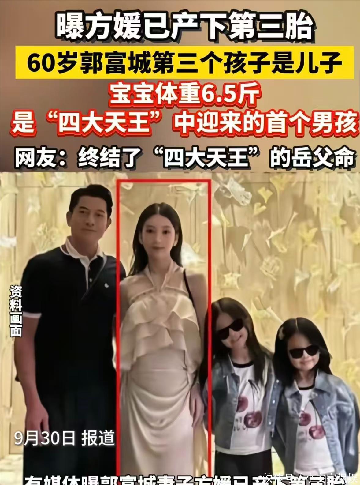 9月30日港媒爆料方媛还是生劣等三胎犬子,因此郭富城成为四大天王中第一个有犬子的成员欧洲杯体育,冲破了“四大天王岳父命”的说法。