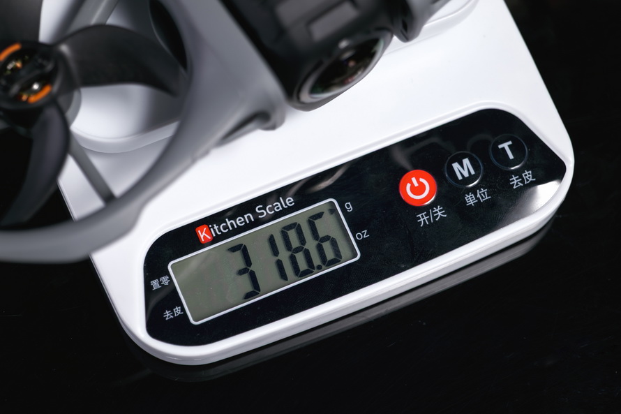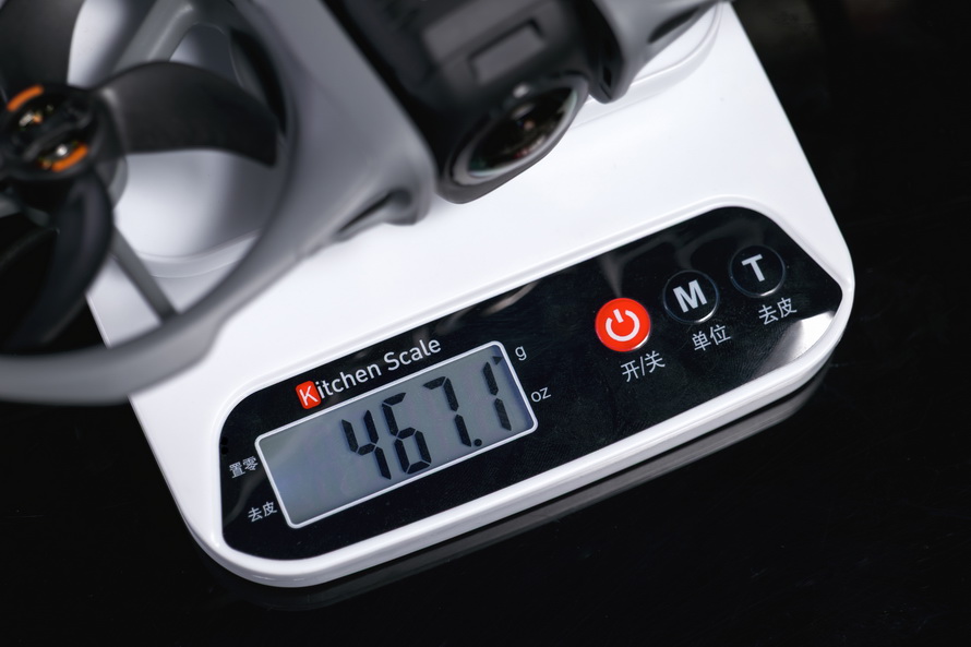 实测Avata 360裸机(不含电板、镜头保护罩)下分量约318g,装配上电板后,分量更是大幅度攀升,达到了467g傍边,快一斤了。
