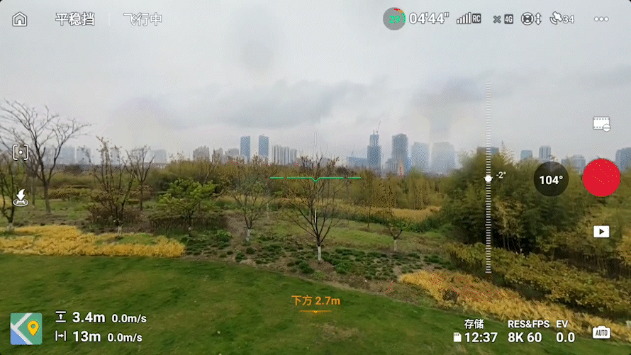 同期大疆也针对Avata 360全景特质,对遨游界面进行退换,在全景方式下提供了104°、134°、272°多个FOV视角,让用户在不同场景遨游时赢得更佳的遨游体验。